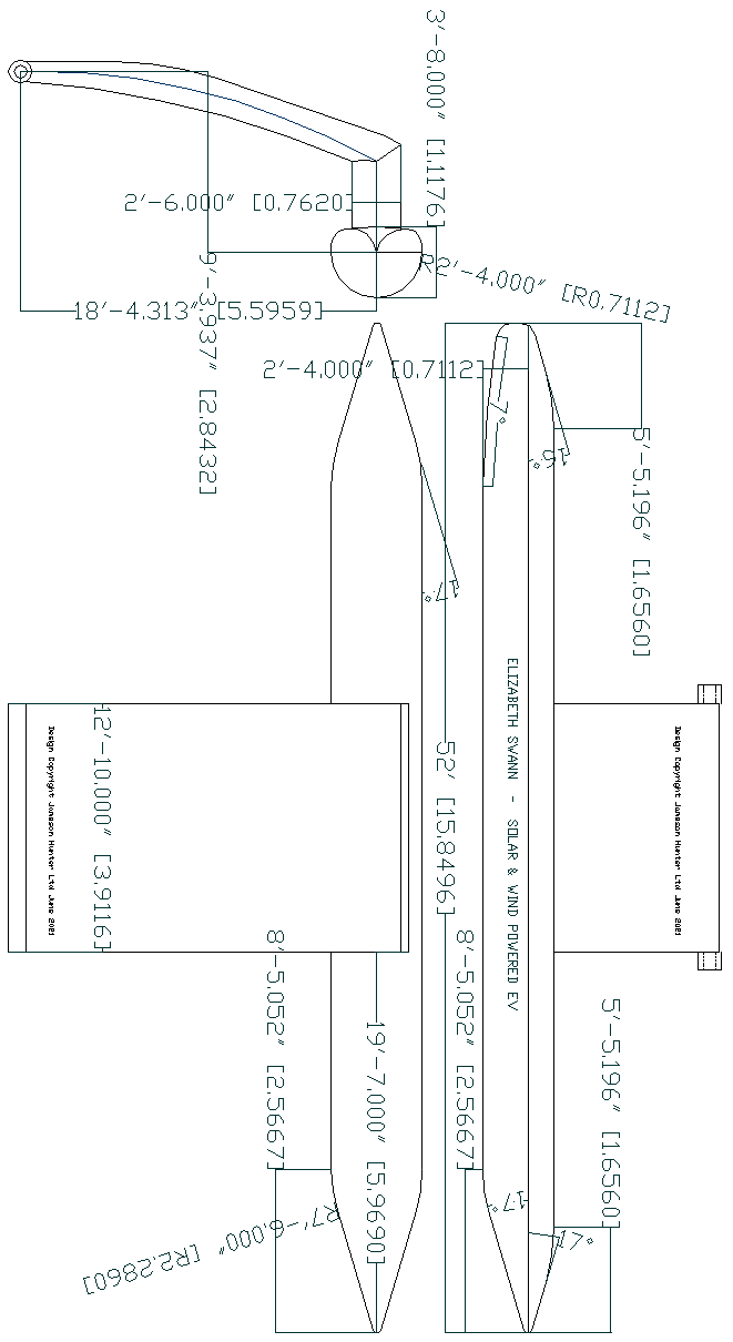 The designs and drawings on this page and others on this website relating to the Elizabeth Swann trimaran are Design Copyright © June 2021 Jameson Hunter Ltd., all rights reserved.